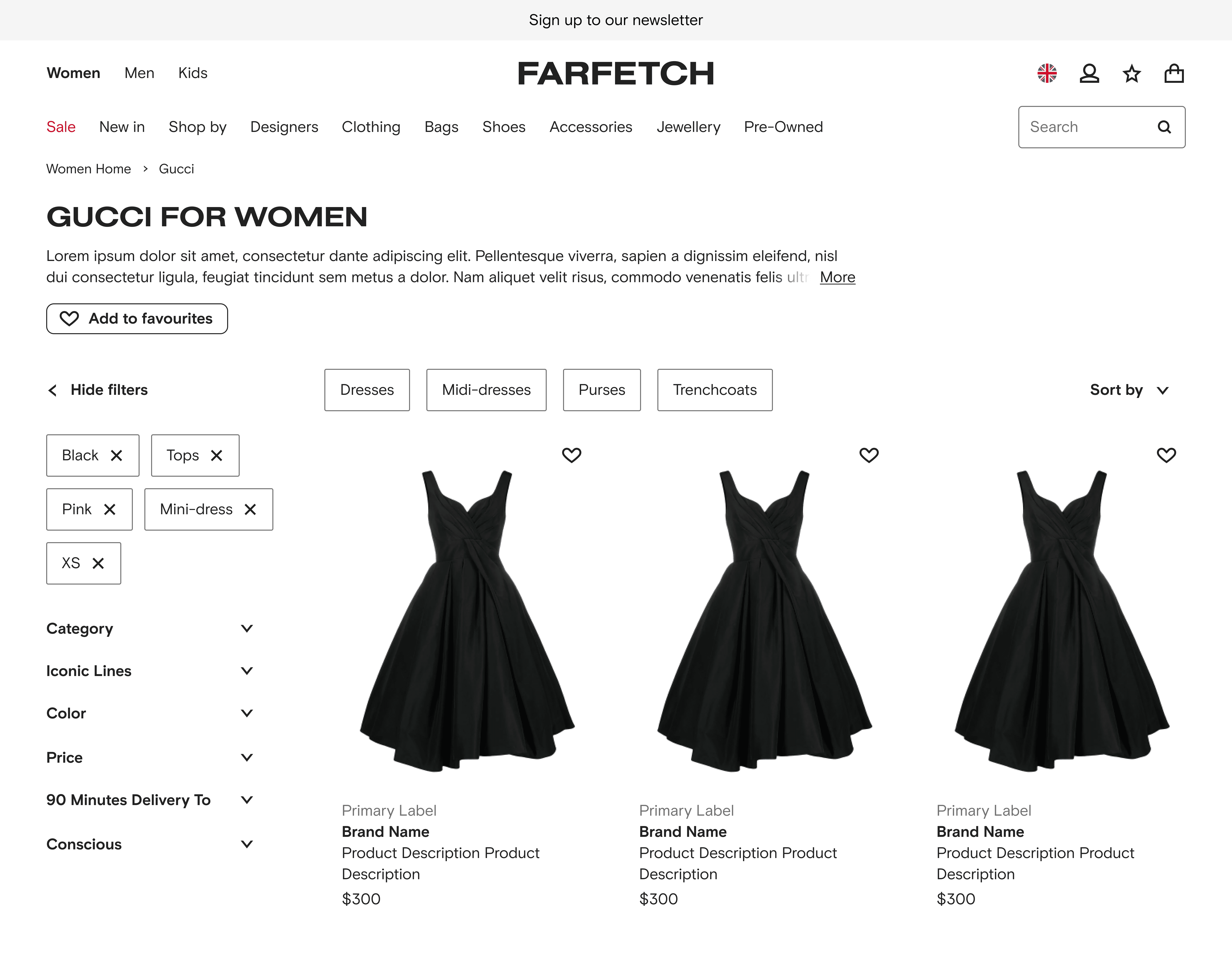 The complexity also lies in the fact that Farfetch has many ways to browse its catalogue as it has different product listings pages (PLP) :