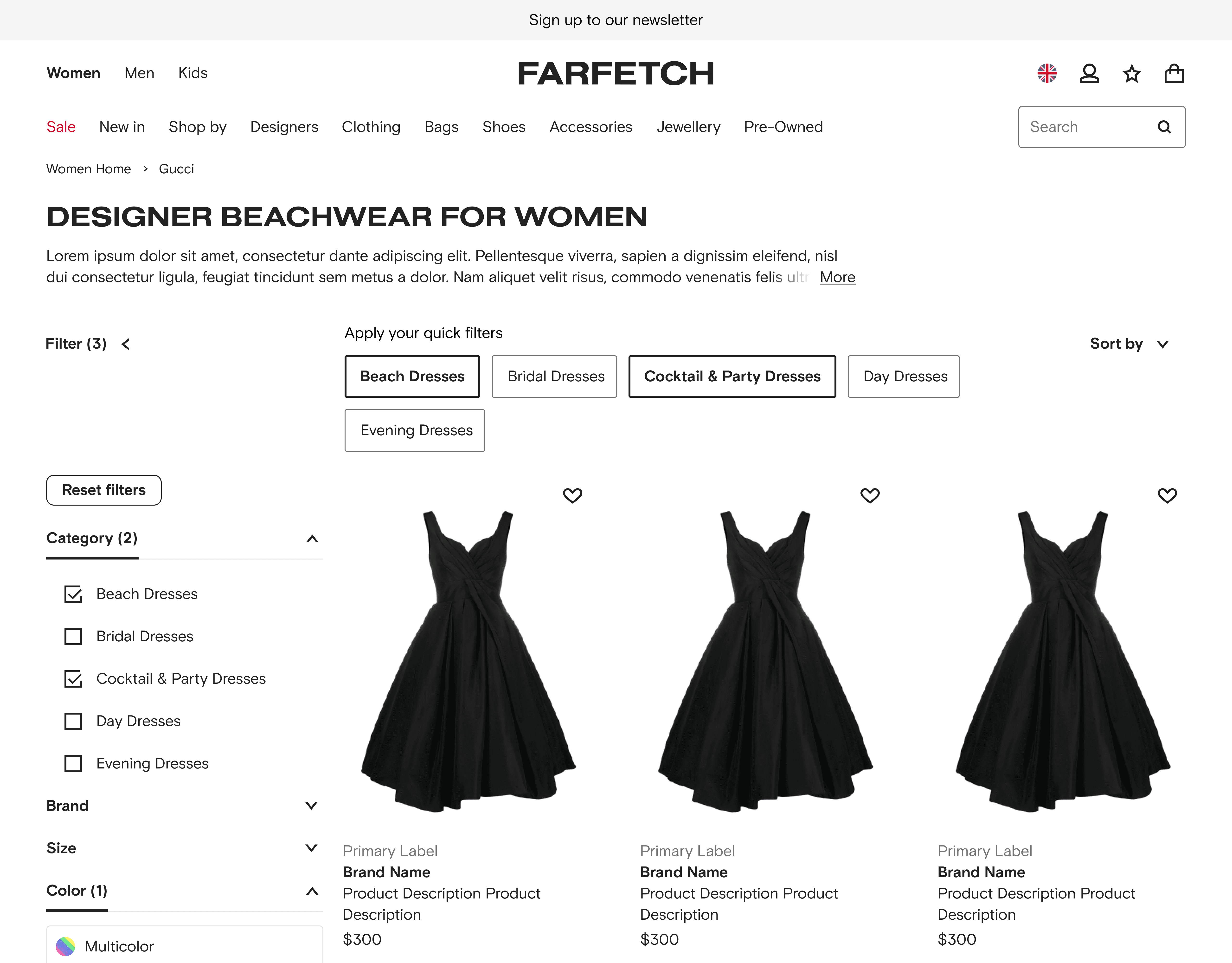 Gucci Brand Product Listing Page