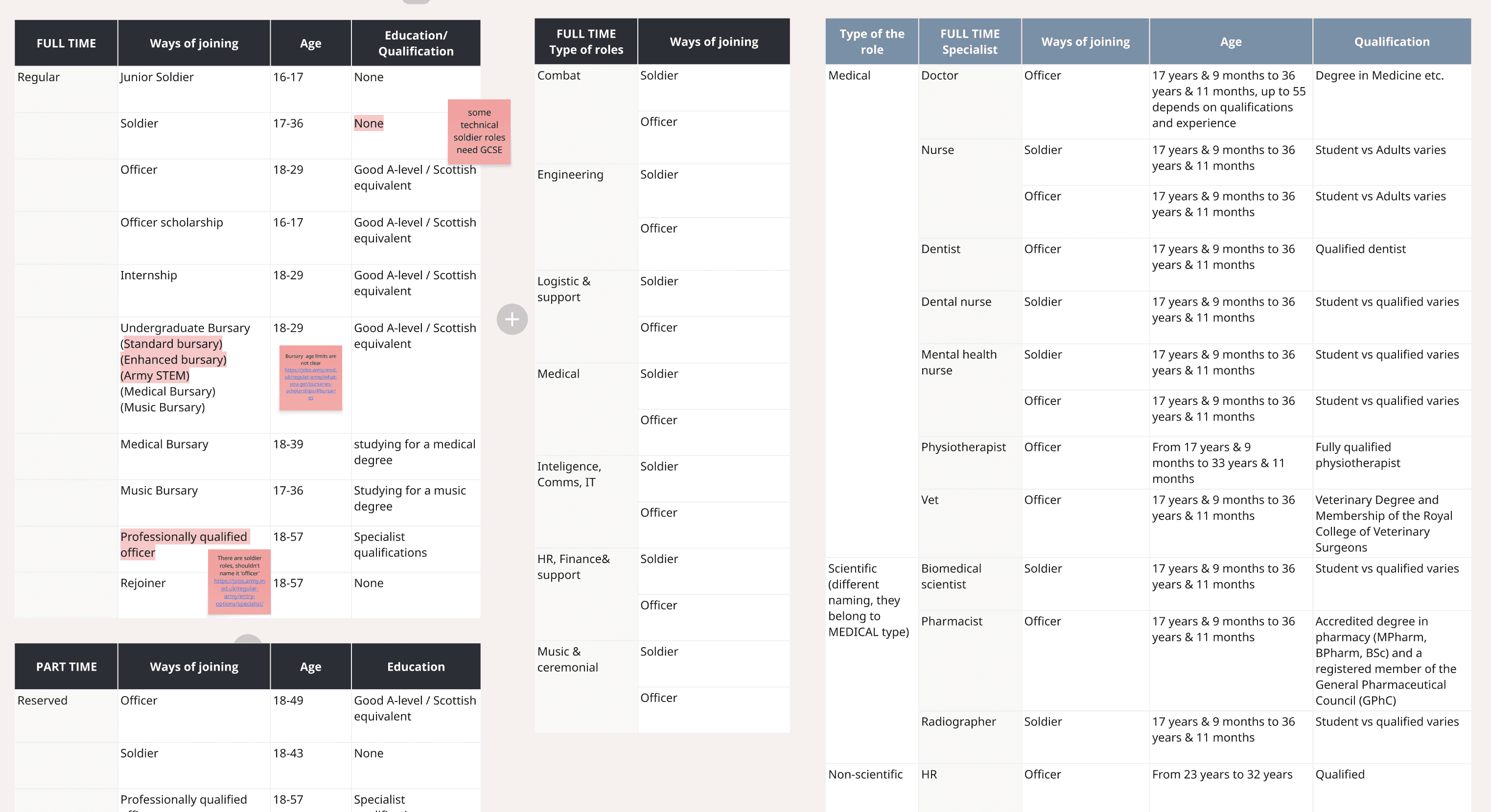 The British Army offers over 170 full-time and part-time roles, but the application journey is often overwhelming and confusing for potential candidates. A government-focused research agency (our client) had previously conducted in-depth research that revealed key frustrations during the discovery journey and a significant drop-off in applications.