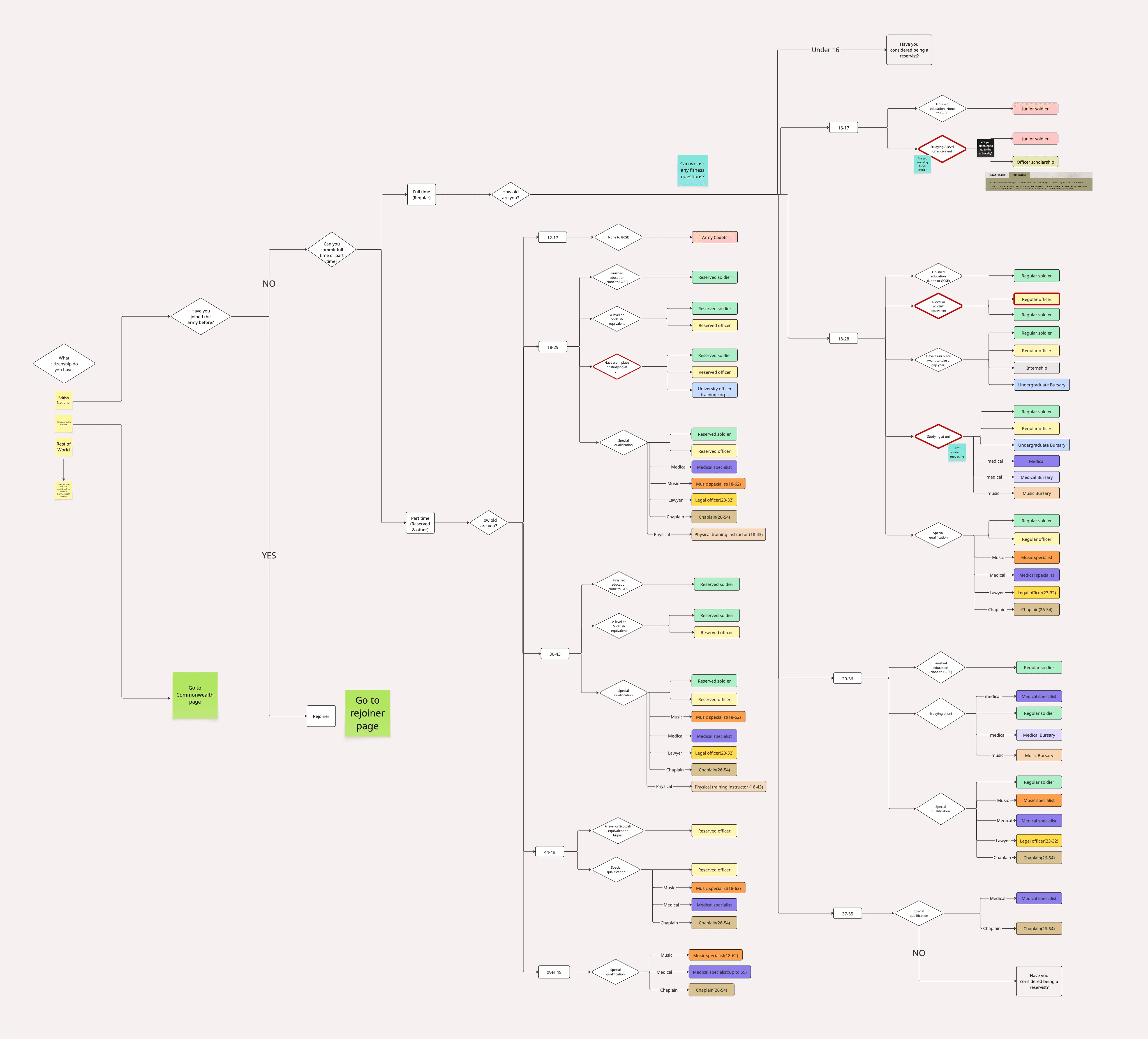 To simplify a complex role structure, I mapped all entry routes and role types, and created a logic diagram that reflects how eligibility factors like age, education, and citizenship influence a candidate’s best-fit route.